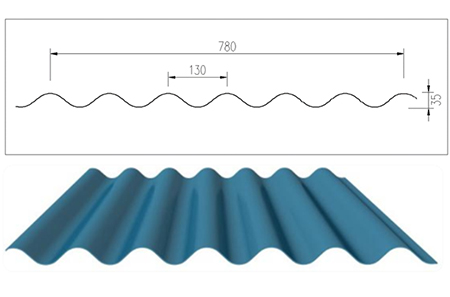 ● HL35-130-780型波紋板,公母肋搭接設(shè)計合理,極大限度地避免墻面出現(xiàn)搭接縫,提升墻面整體平整度和美觀性。做橫鋪墻面,具有流暢的波紋狀外觀,可做彎弧板,能滿足各類傳統(tǒng)和現(xiàn)代的建筑設(shè)計風(fēng)格。
